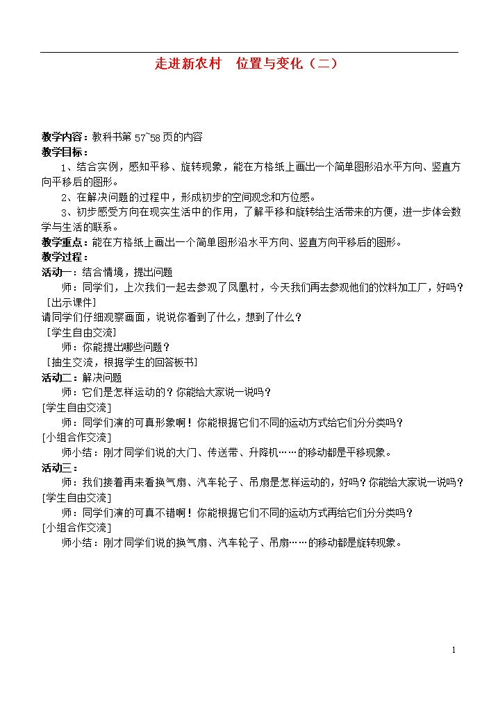 教案-全国-2013_三年级数学上册 走进新农村 位置与变化(二)教案 青岛版