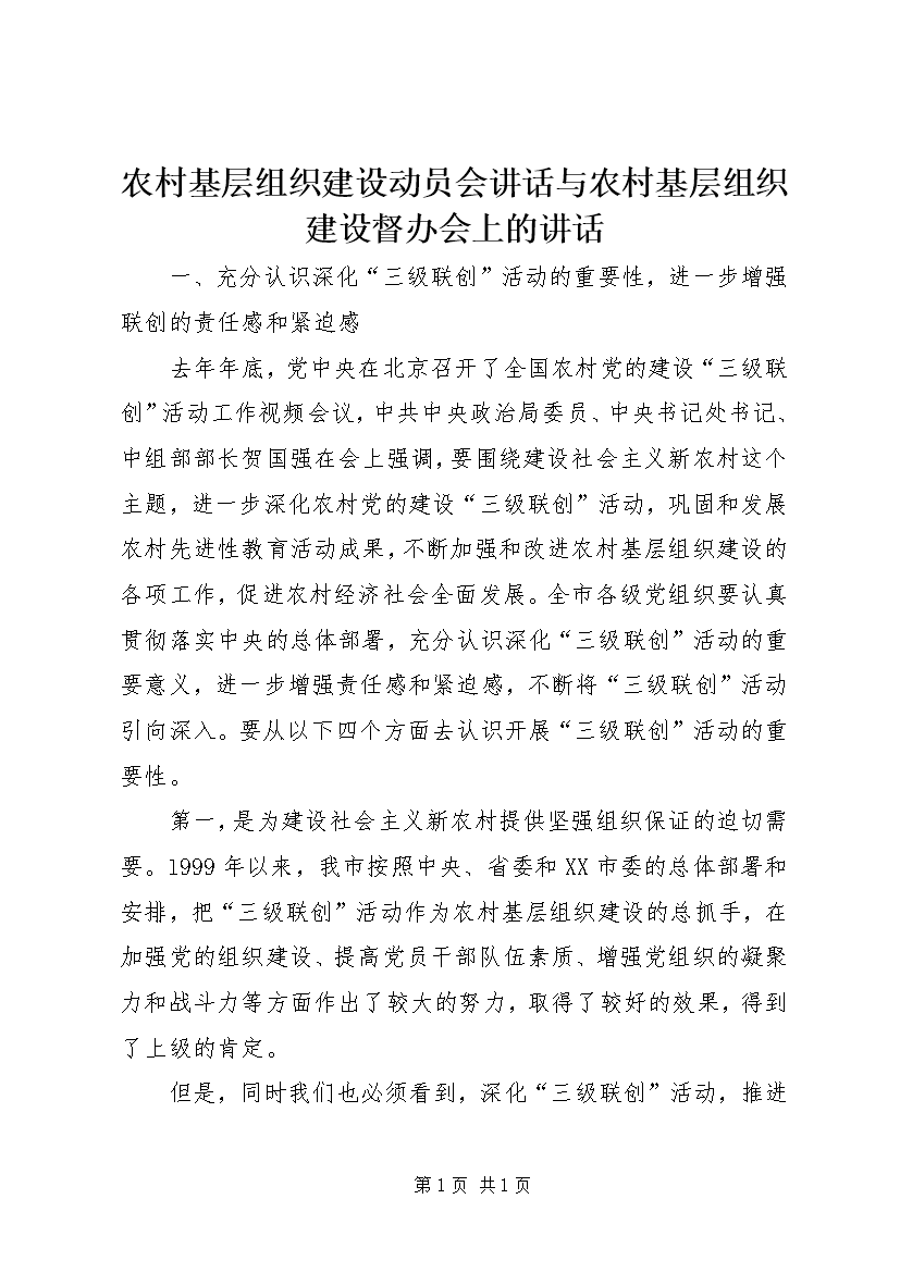 农村基层组织建设动员会讲话与农村基层组织建设督办会上的讲话 (4)