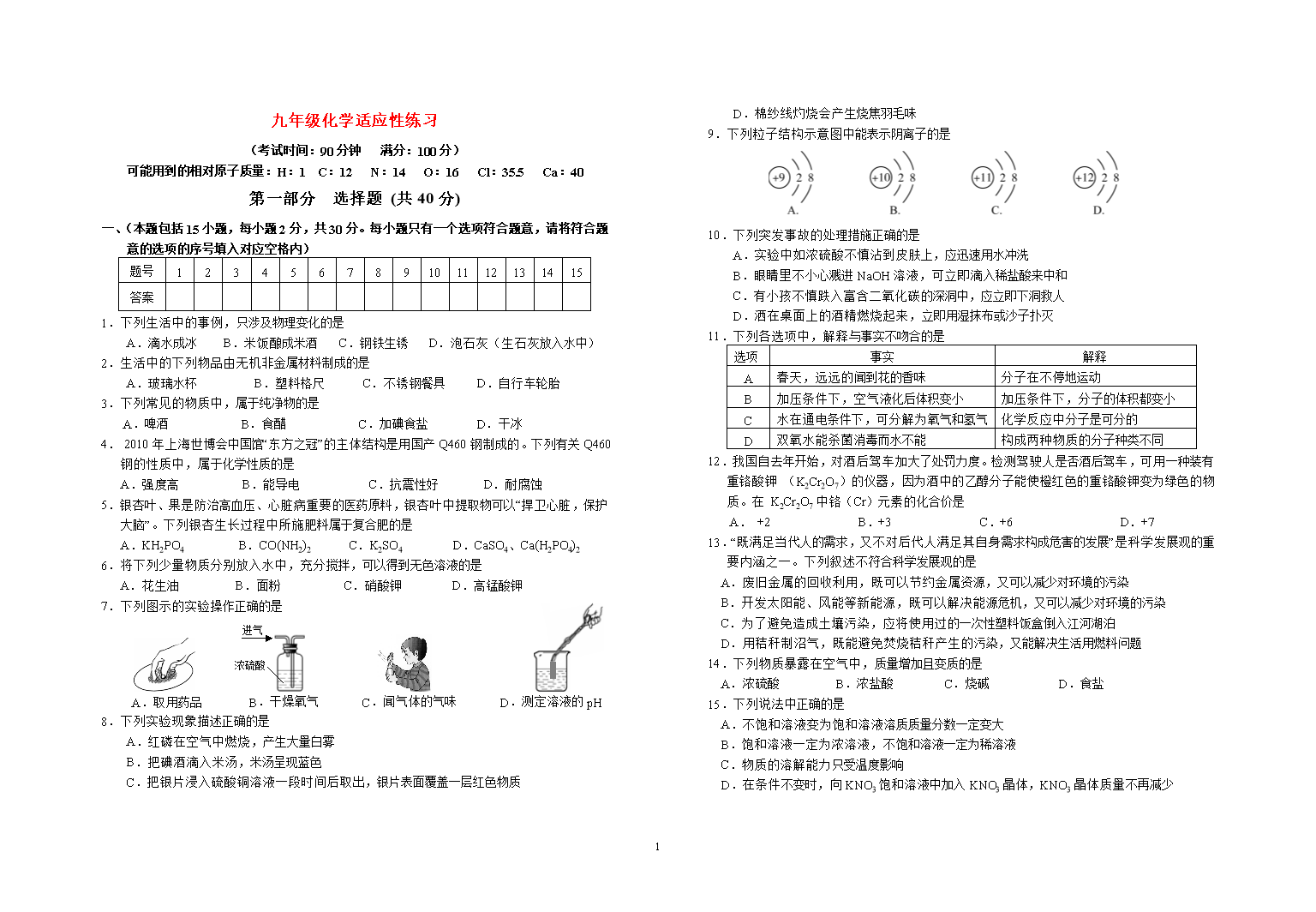 试题-江苏-2010_江苏省姜堰第四中学2010年九年级化学中考模拟试卷上教版
