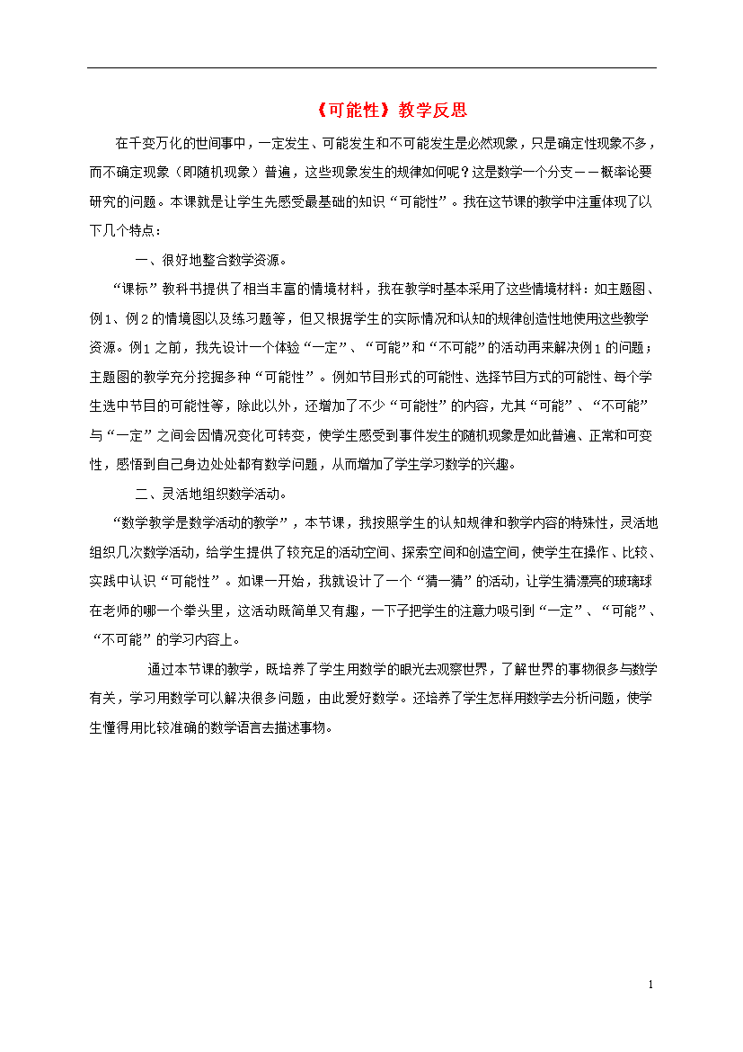 教案-全国-2012_四年级数学下册《可能性》教学反思 青岛版五年制