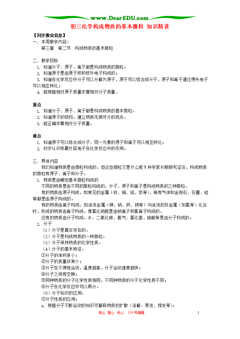 试题-全国-2006_初三化学构成物质的基本微粒 知识精讲 上海科技版