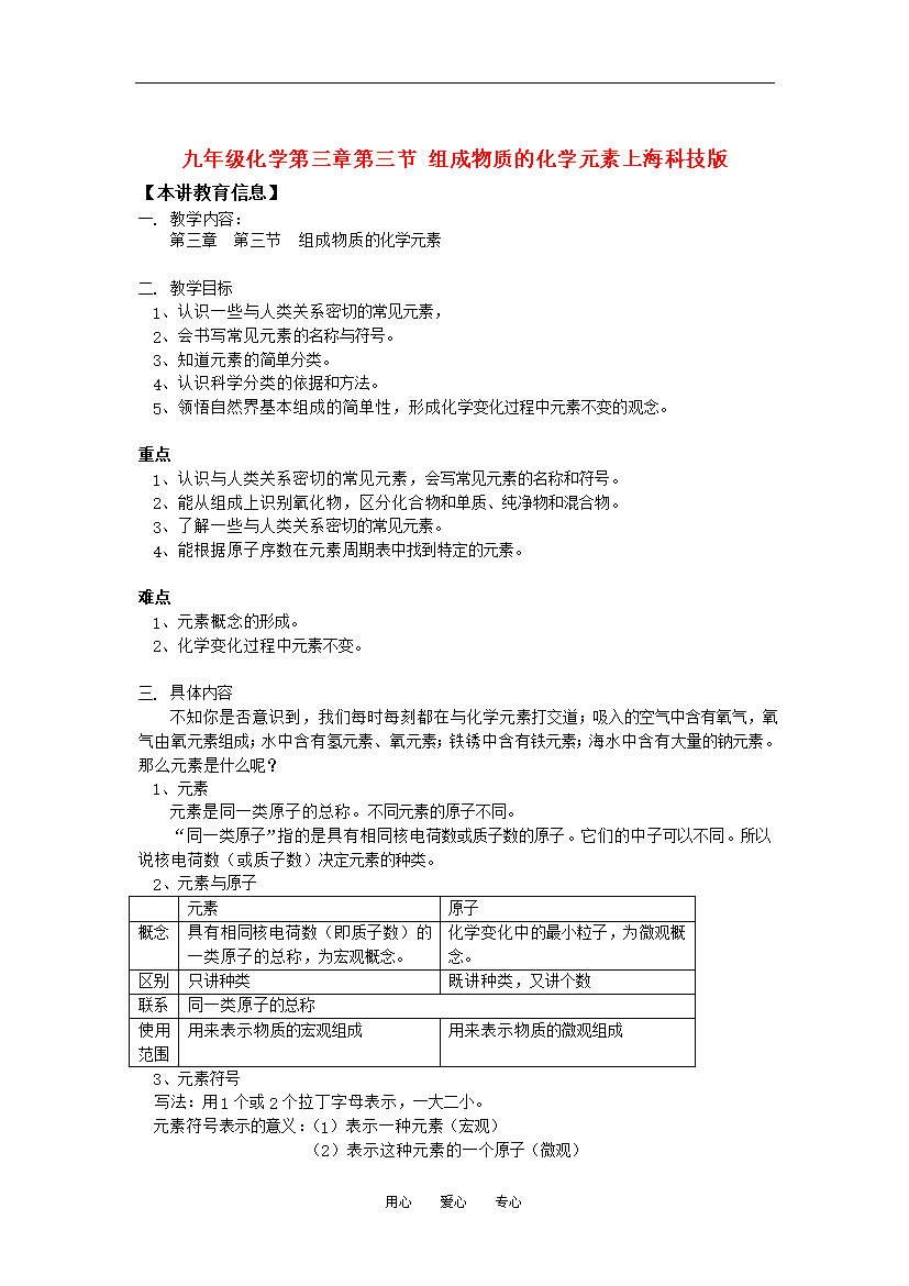 试题-全国-2009_九年级化学第三章第三节 组成物质的化学元素上海科技版知识精讲