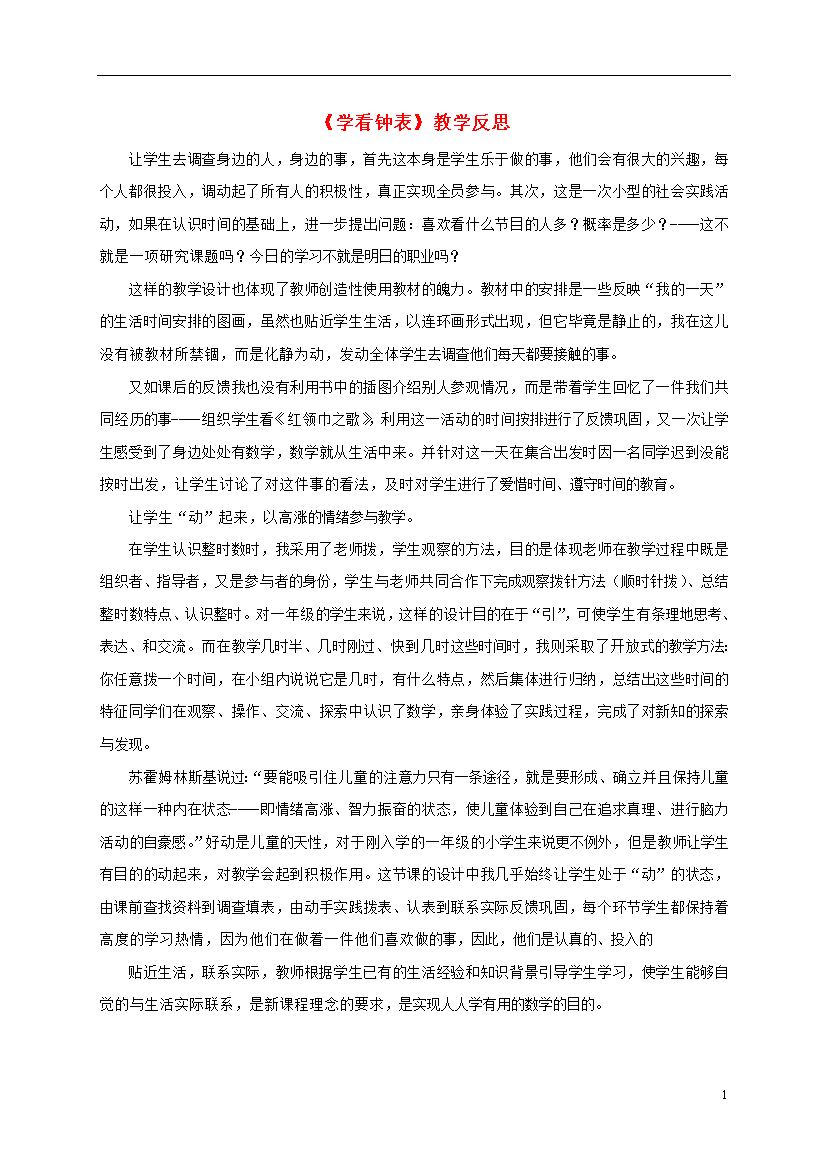 教案-全国-2012_一年级数学下册 学看钟表教学反思 青岛版五年制