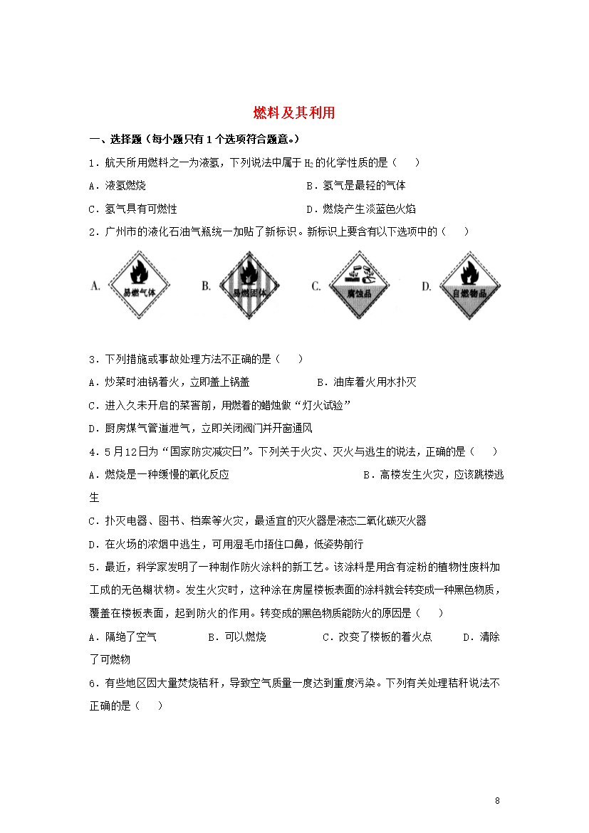 试题-全国-2017_2017年中考化学专题练习 燃料及其利用