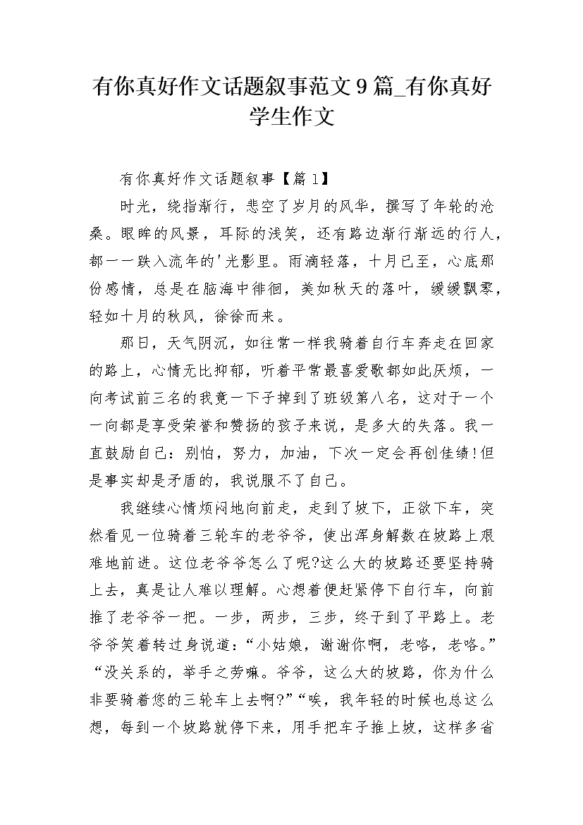 有你真好作文话题叙事范文9篇_有你真好学生作文