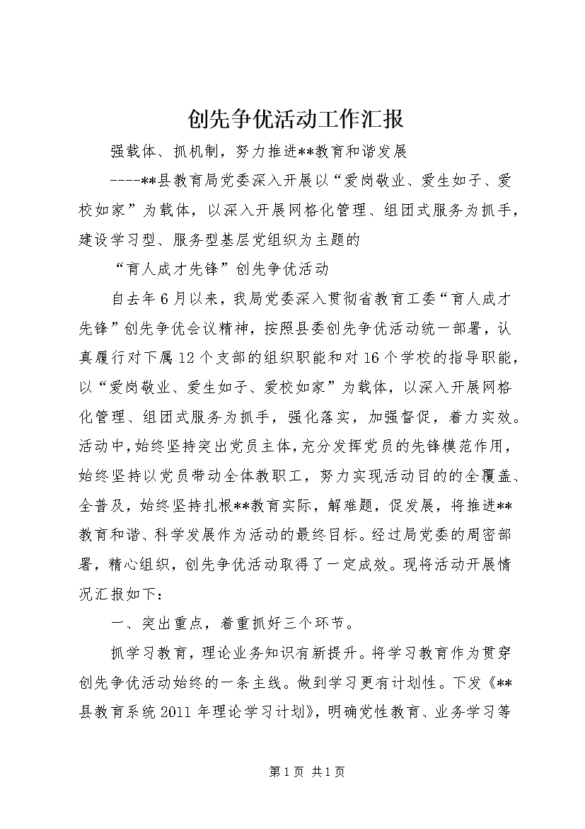 创先争优活动情况报告(内附破解难题、长效机制建设、长效机制)