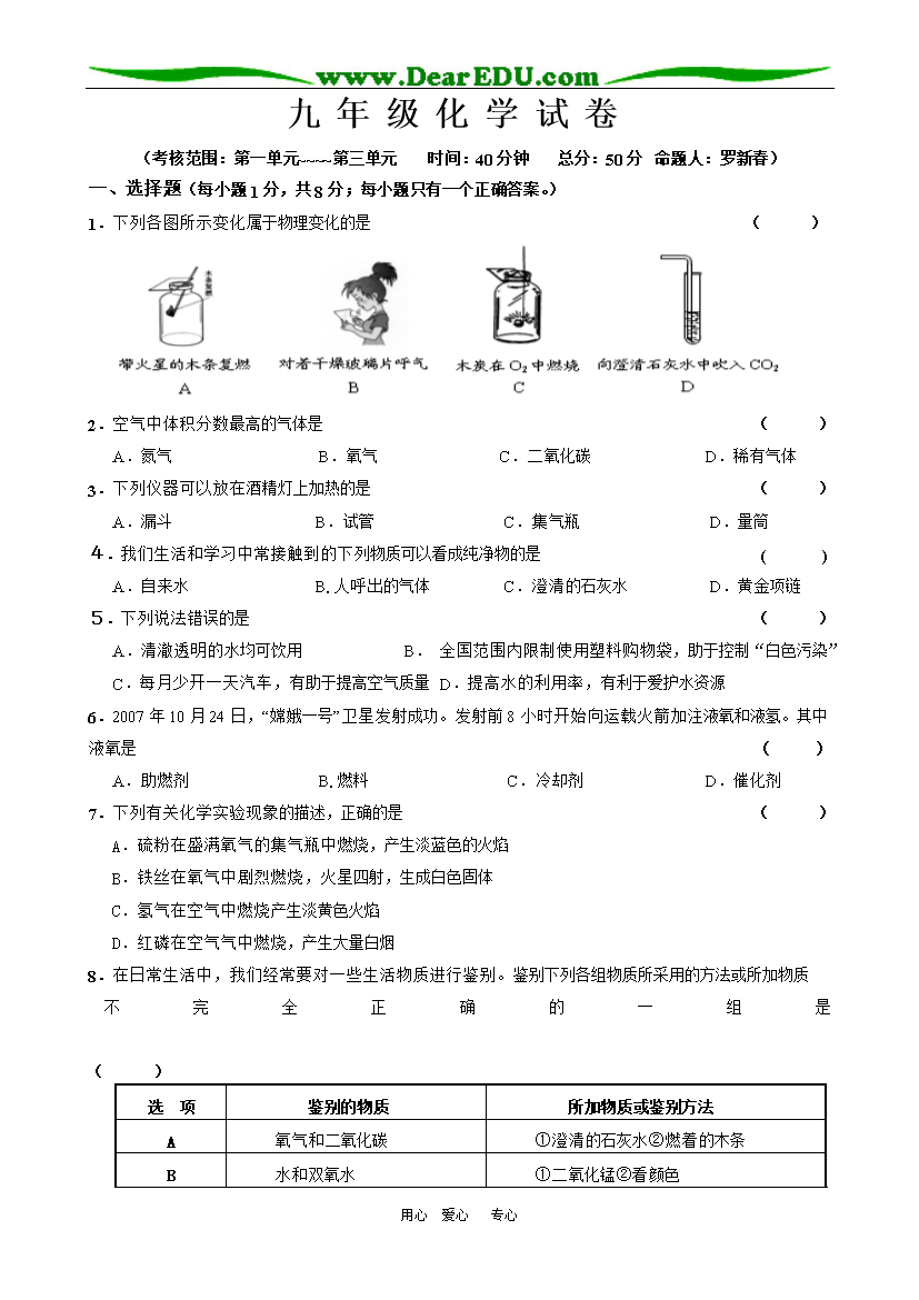 试题-吉林-2008_吉林省松花江中学九年级化学第一次月考