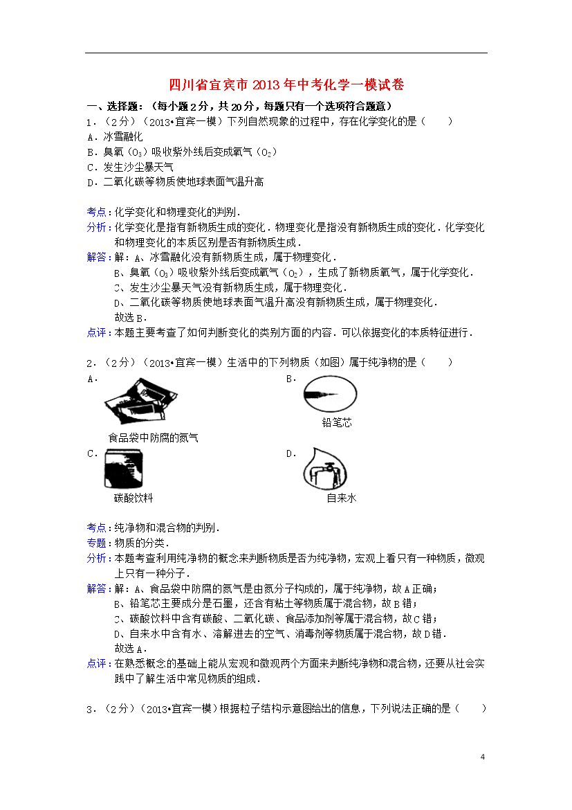 试题-四川-2013_四川省宜宾市2013年中考化学一模试卷(解析版)