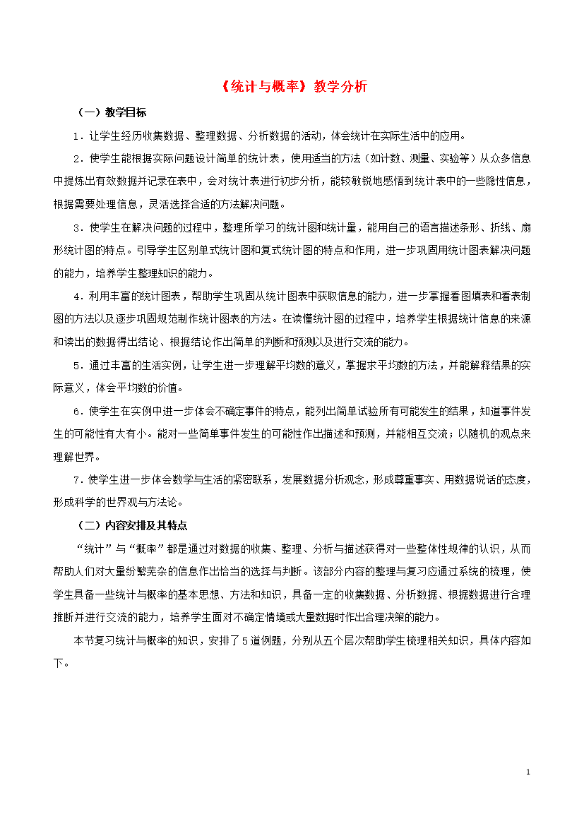 素材-全国-2019_六年级数学下册 6 整理与复习 3《统计与概率》教学分析素材 新人教版