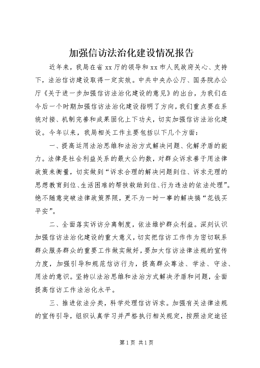 加强信访法治化建设情况报告