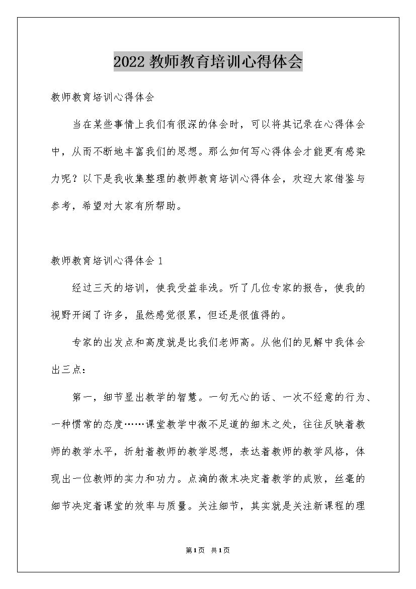 2022教师教育培训心得体会