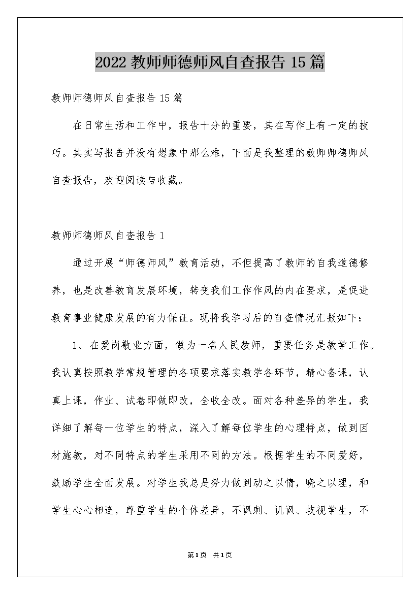 2022教师师德师风自查报告15篇