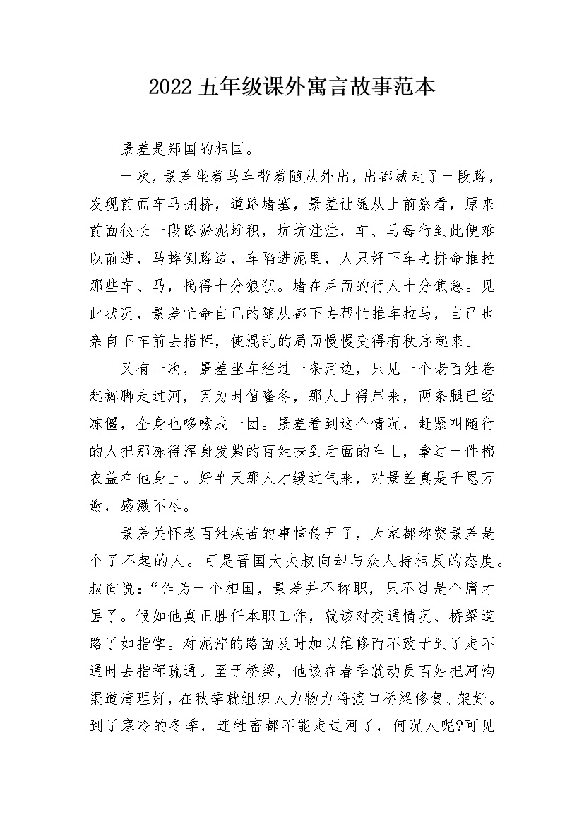 2022五年级课外寓言故事范本