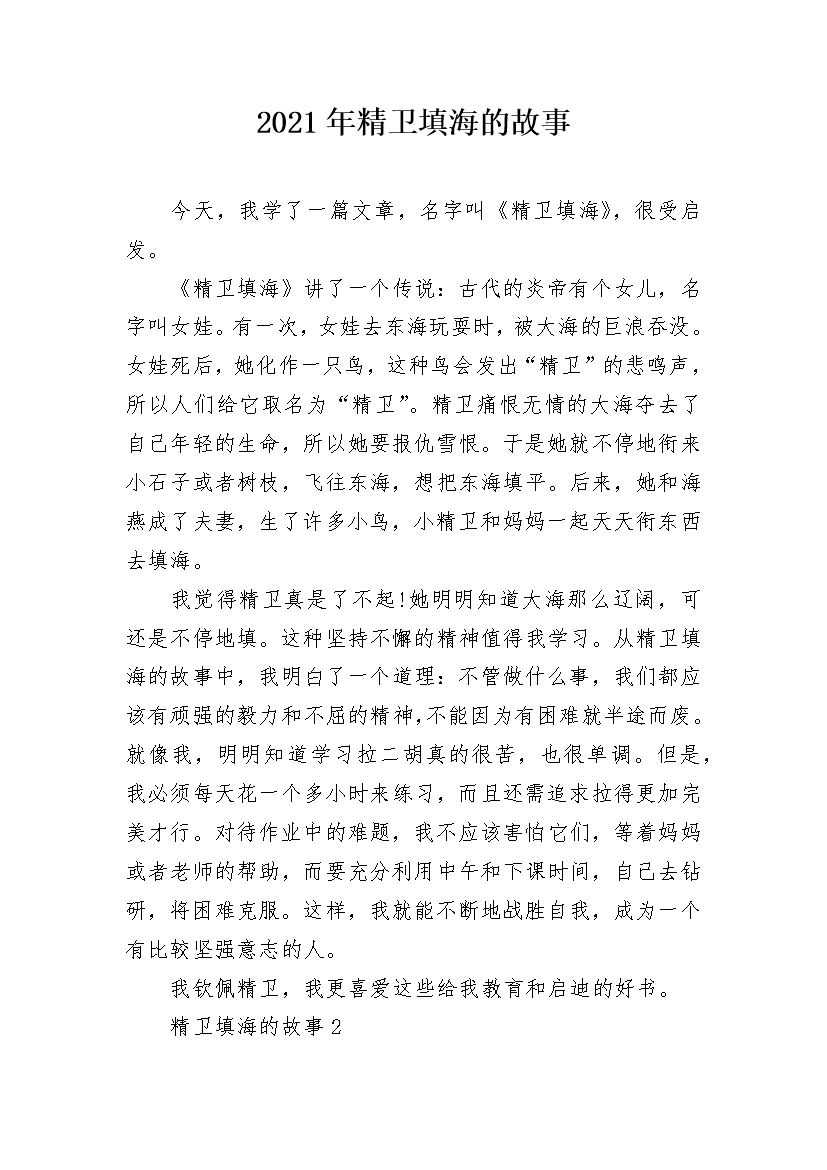 2021年精卫填海的故事