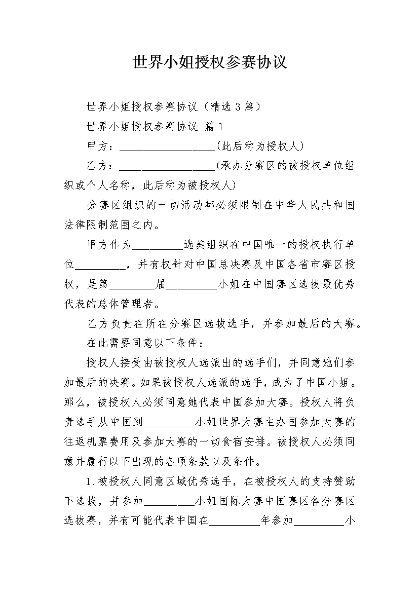 世界小姐授权参赛协议
