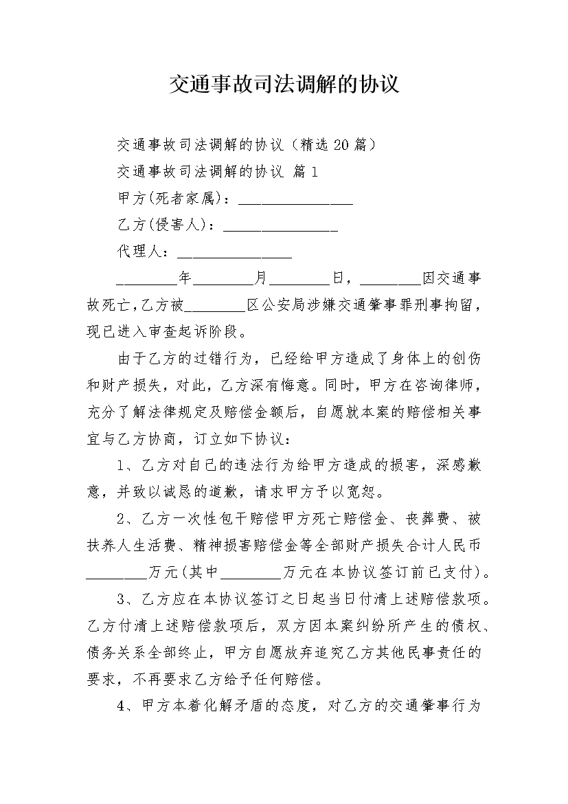 交通事故司法调解的协议