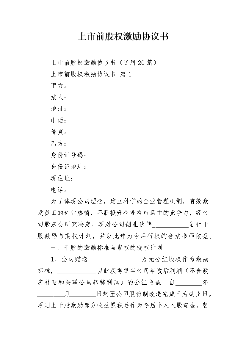 上市前股权激励协议书