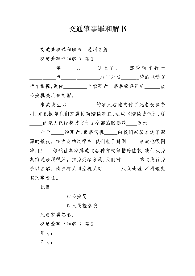 交通肇事罪和解书