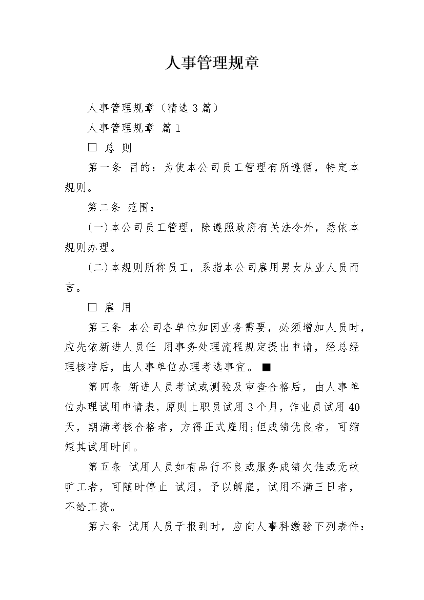 人事管理规章