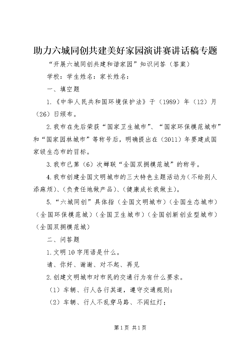 助力六城同创共建美好家园演讲赛讲话稿专题 (3)