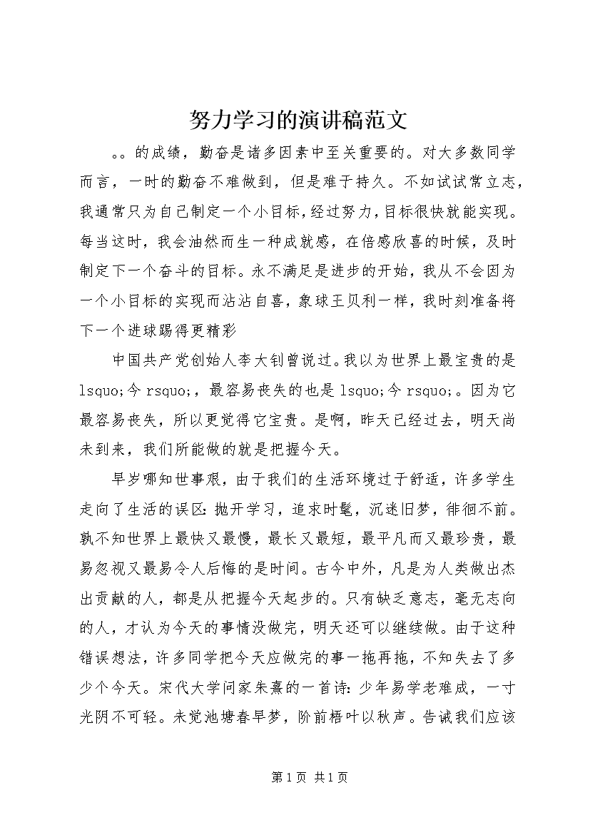 努力学习的演讲稿范文