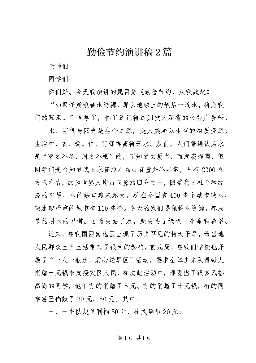 勤俭节约演讲稿2篇 (7)