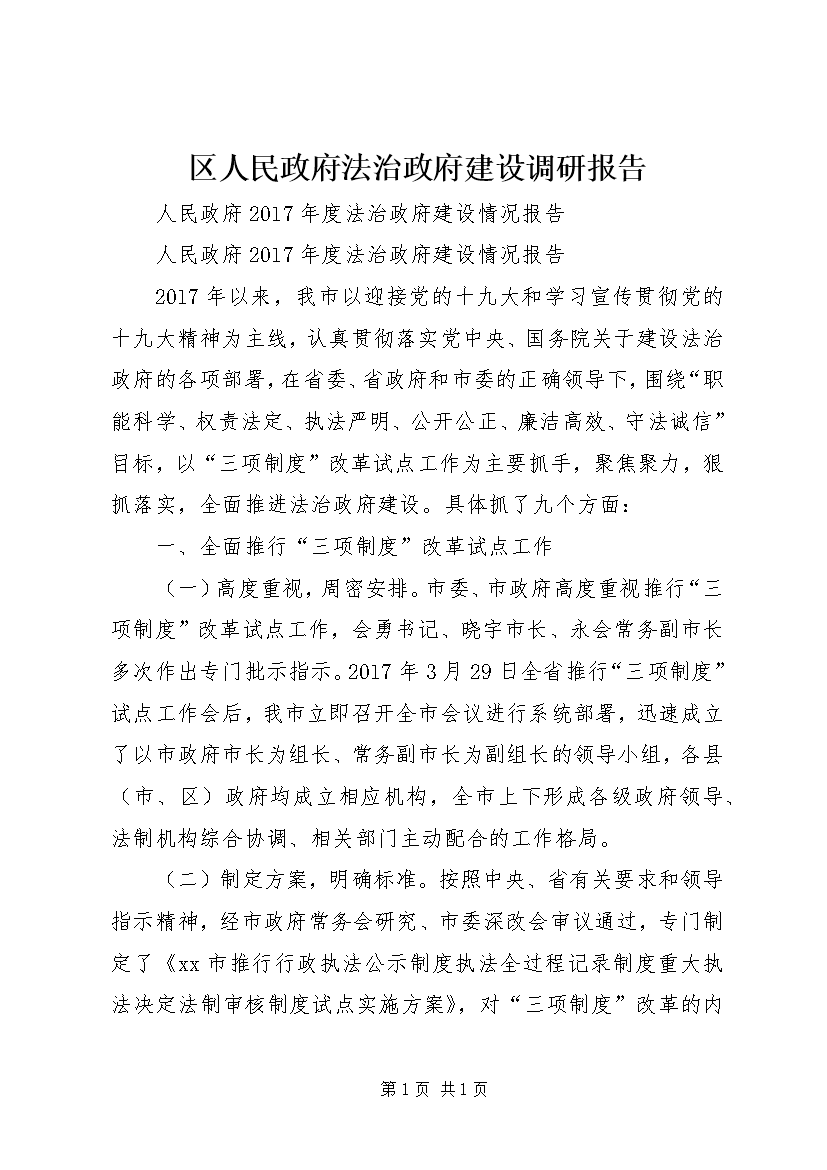 区人民政府法治政府建设调研报告 (2)