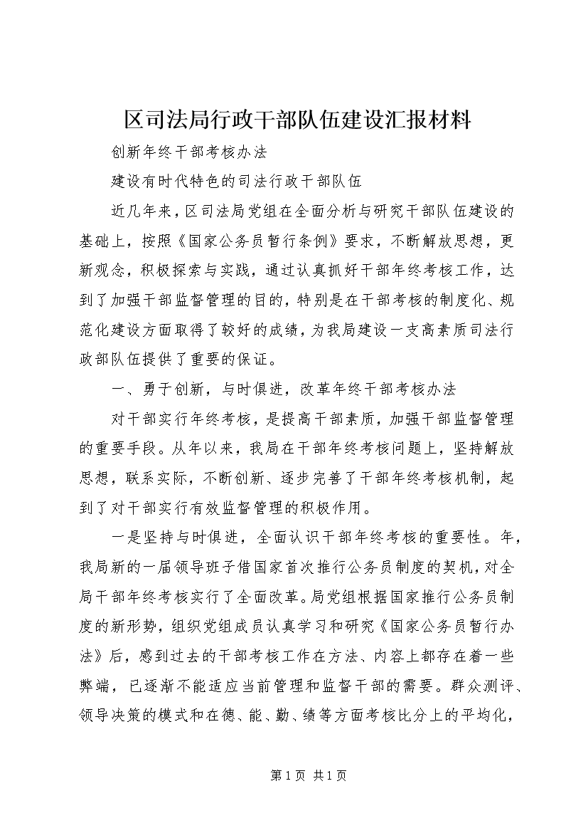 区司法局行政干部队伍建设汇报材料 (3)