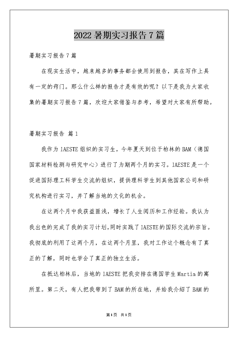 2022暑期实习报告7篇