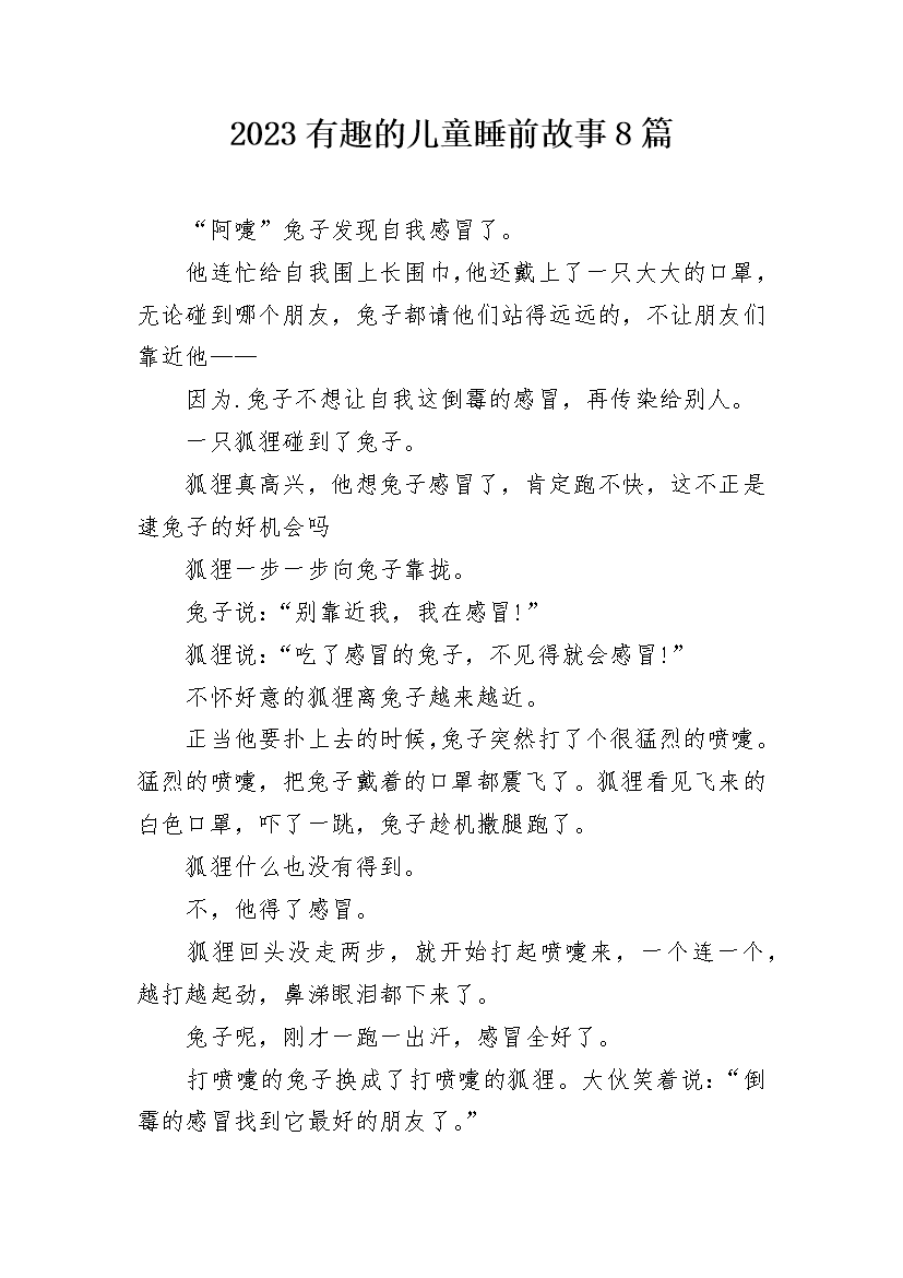 2023有趣的儿童睡前故事8篇