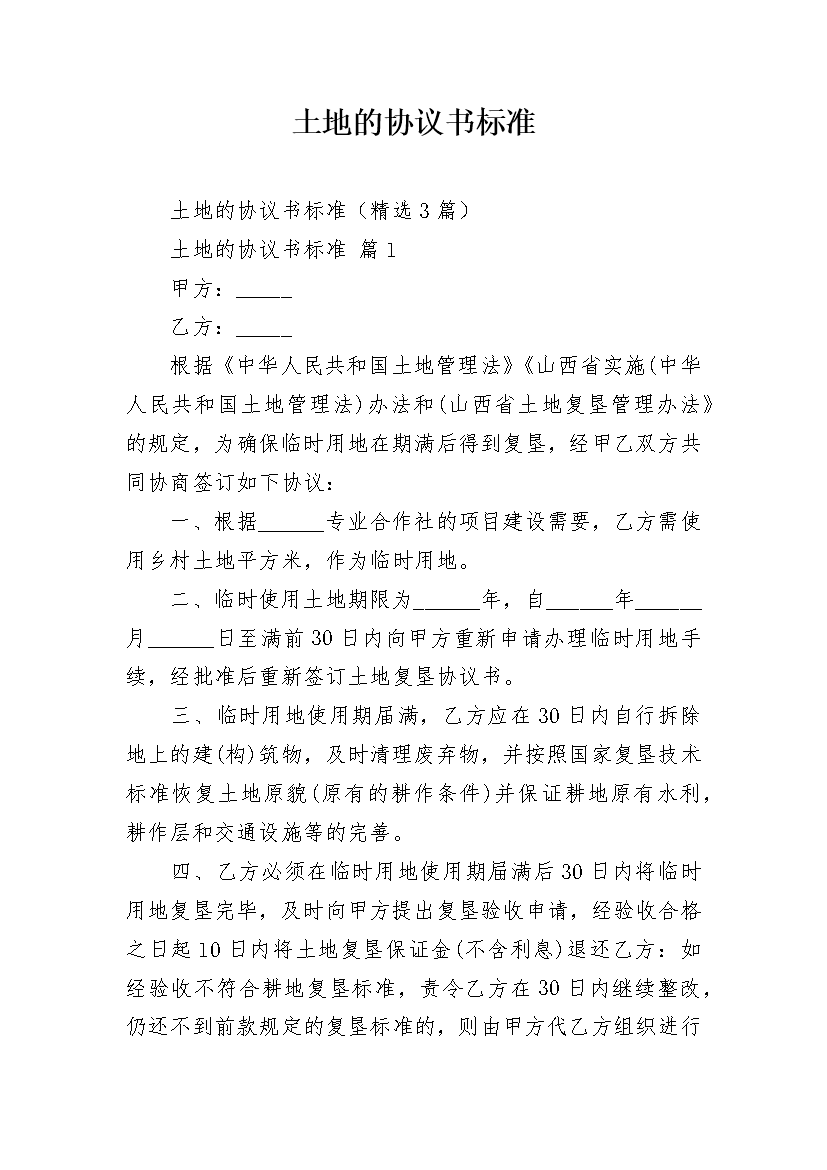 土地的协议书标准