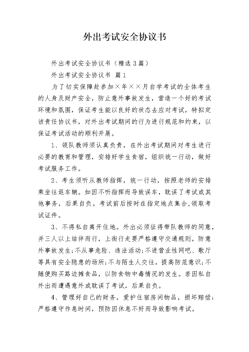 外出考试安全协议书