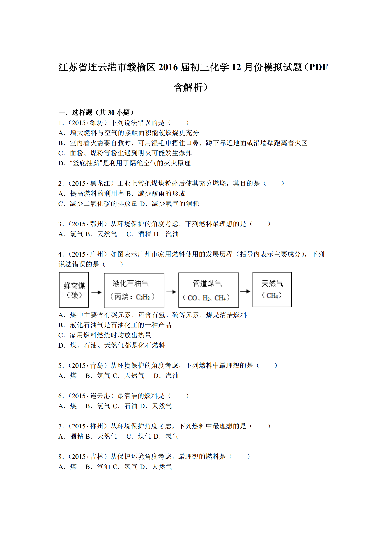 试题-江苏-2016_江苏省连云港市赣榆区2016届九年级化学12月模拟试题(pdf,含解析)