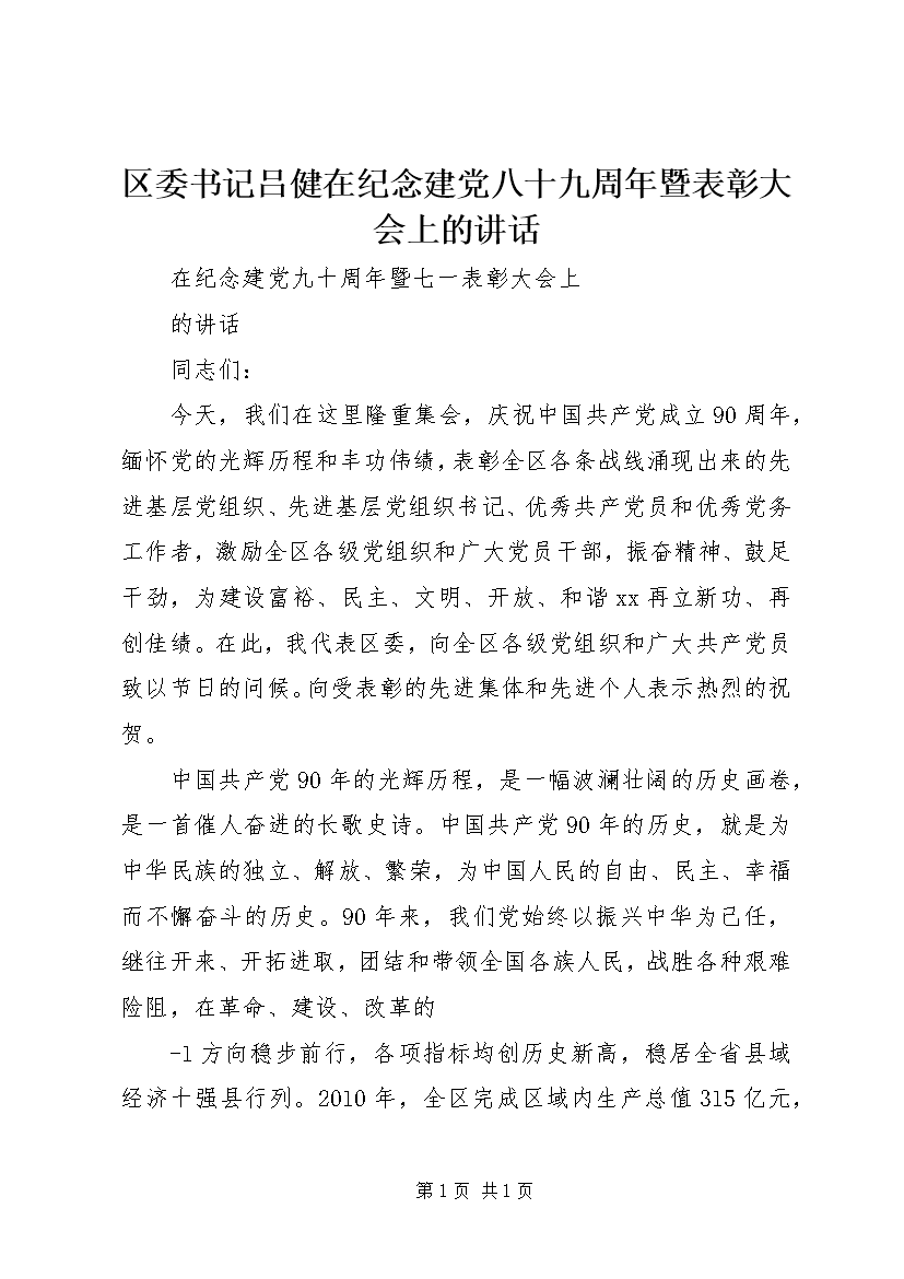 区委书记吕健在纪念建党八十九周年暨表彰大会上的讲话 (3)