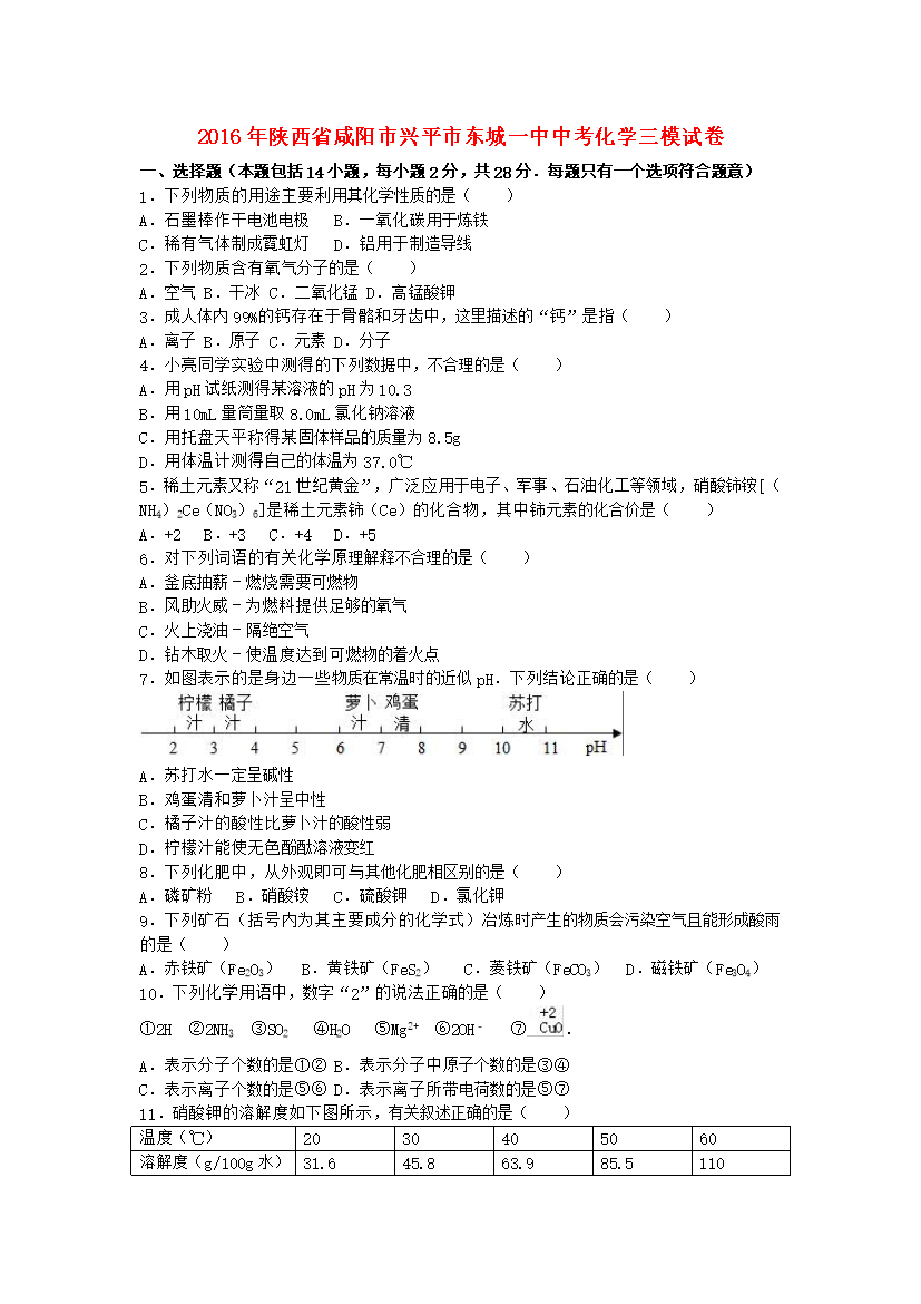 试题-陕西-2016_陕西省咸阳市兴平市东城一中2016年中考化学三模试卷(含解析)