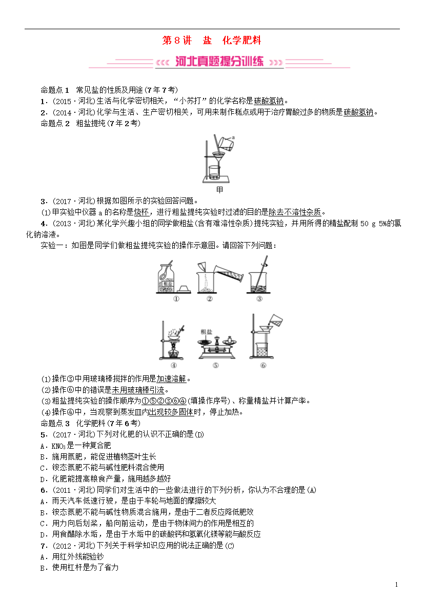 试题-全国-2017_(河北专版)2018中考化学复习练习 第8讲 盐 化学肥料试题