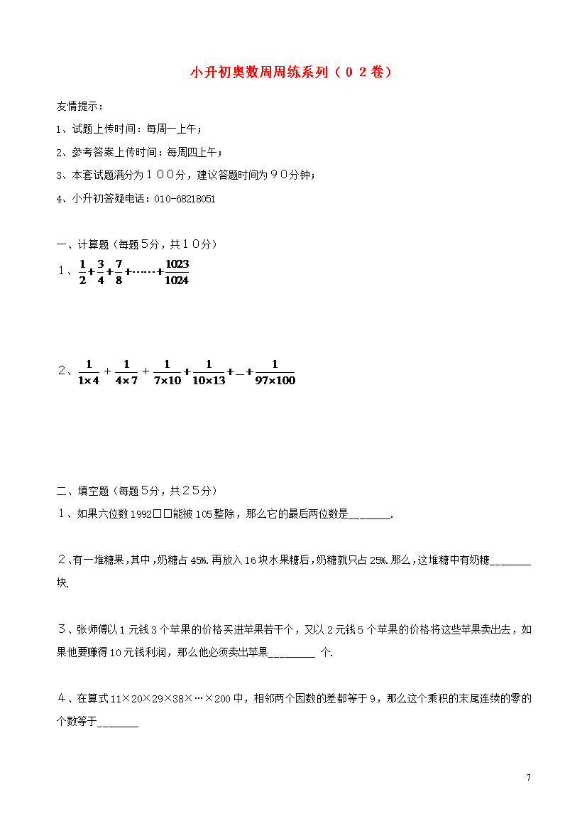 试题-全国-2019_小升初数学奥数周周练2(无答案)