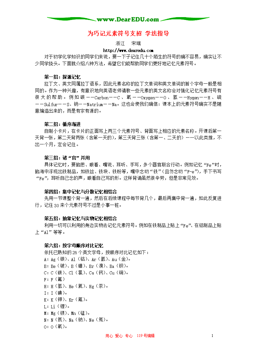 试题-全国-2007_为巧记元素符号支招 学法指导