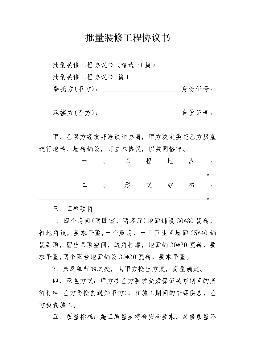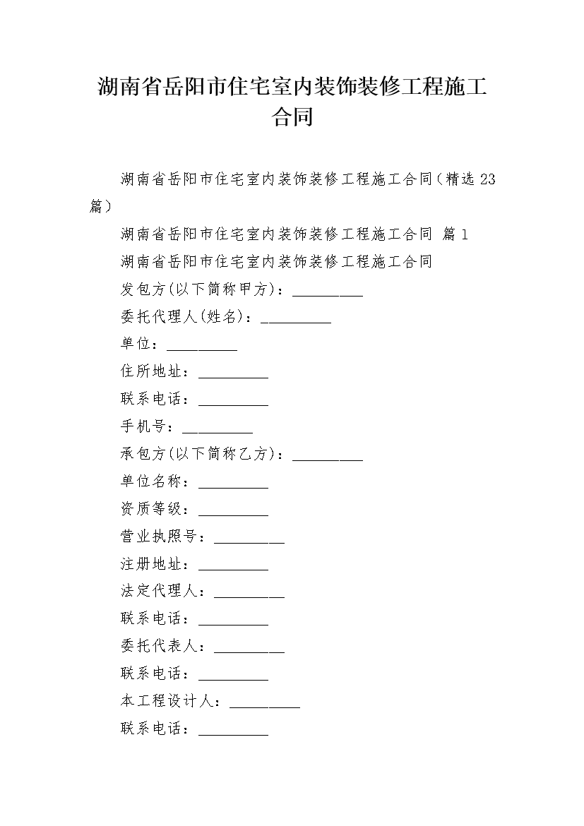 湖南省岳阳市住宅室内装饰装修工程施工合同