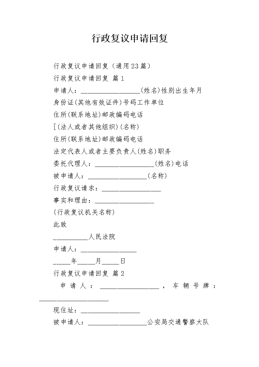 行政复议申请回复