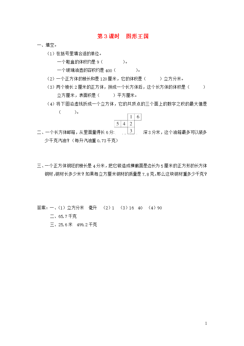 试题-全国-2019_六年级数学上册 第七单元 整理与复习 第3课时 图形王国课堂作业设计 苏教版