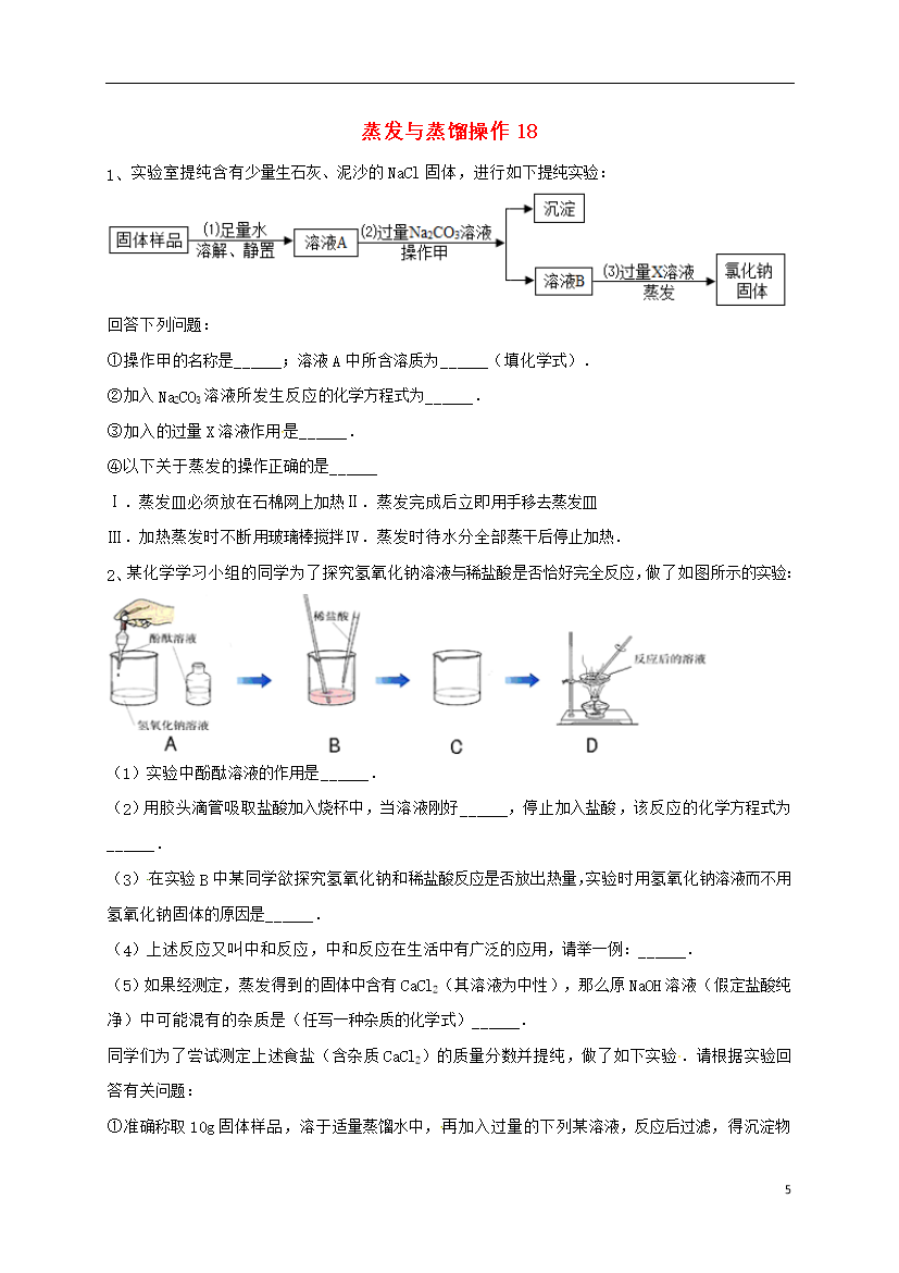 试题-吉林-2018_吉林省吉林市中考化学复习练习 蒸发与蒸馏操作18(无答案) 新人教版
