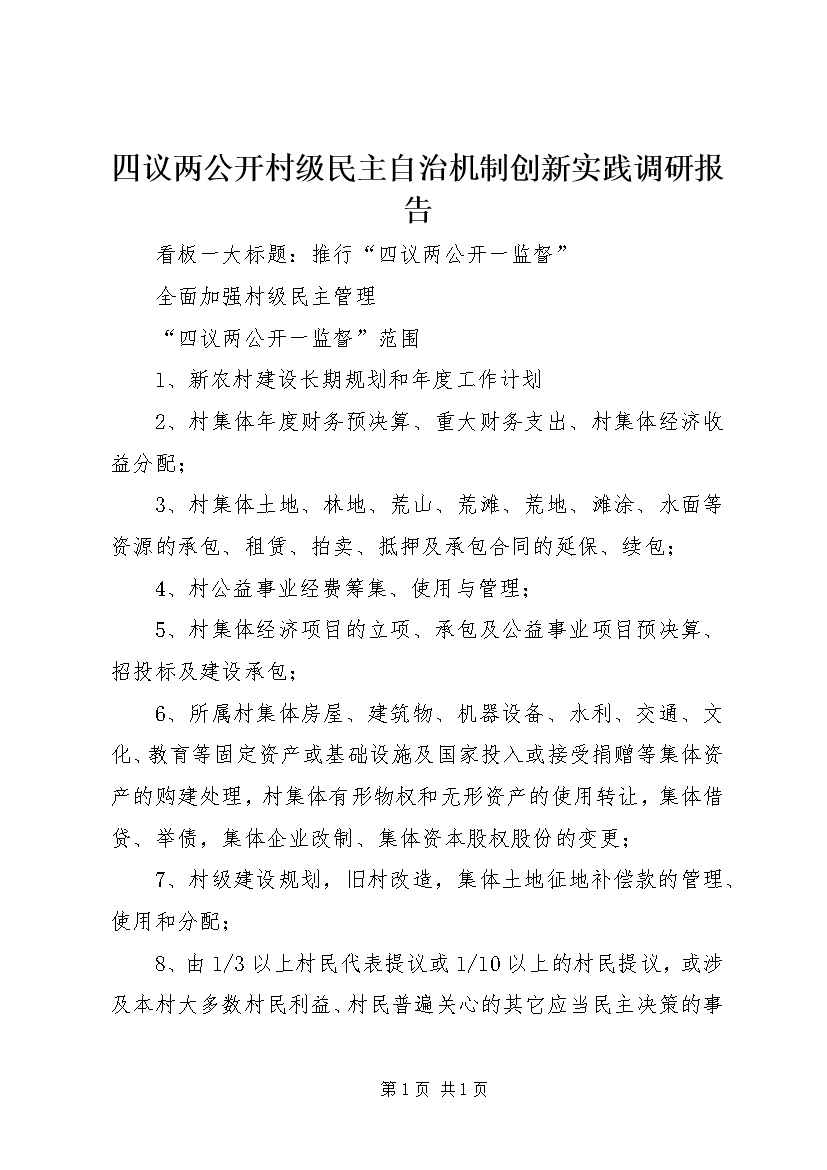 四议两公开村级民主自治机制创新实践调研报告 (3)