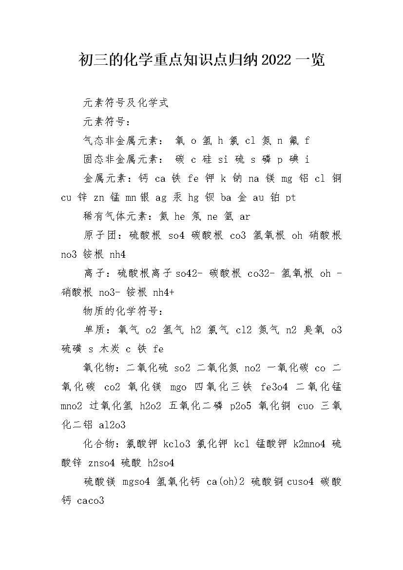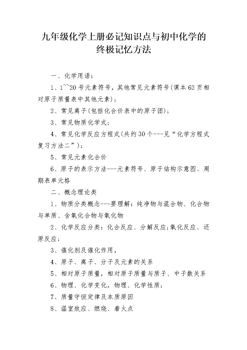 九年级化学上册必记知识点与初中化学的终极记忆方法