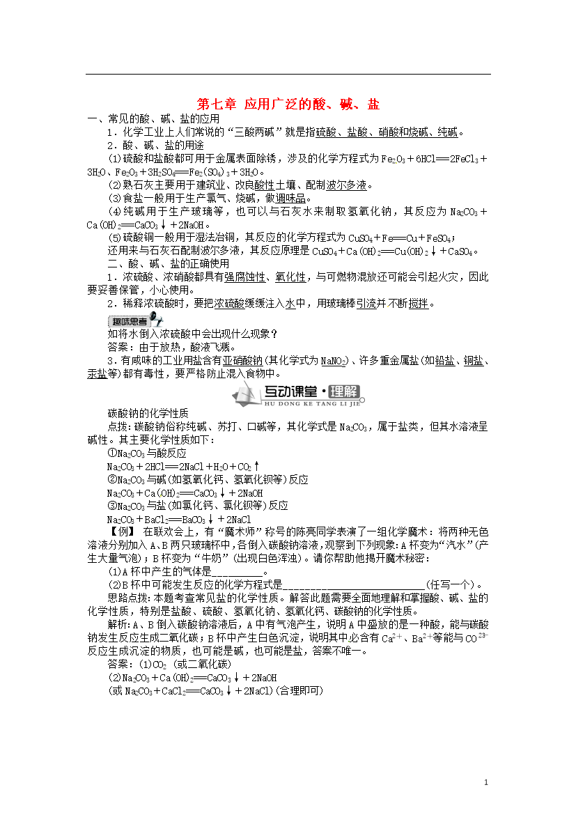 学案-上海-2015_上海市崇明县新民中学九年级化学下册 第七章 应用广泛的酸、碱、盐(第1课时)学案 (新版)沪教版