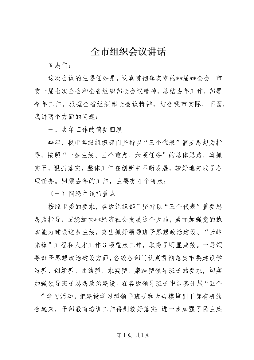 全市组织会议讲话 (5)