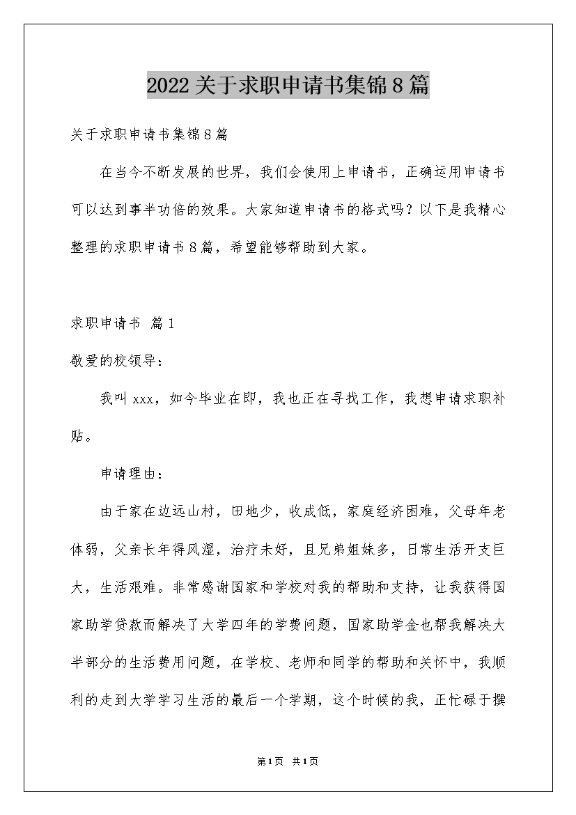 2022关于求职申请书集锦8篇