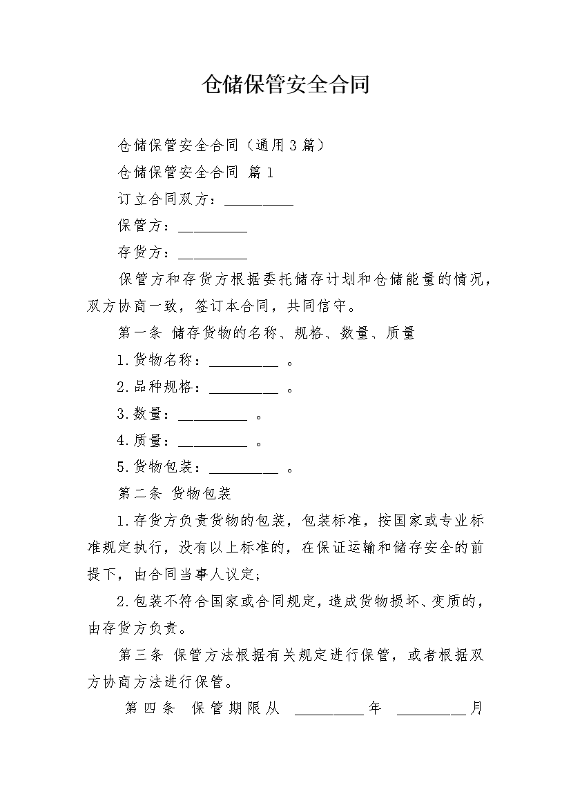 仓储保管安全合同