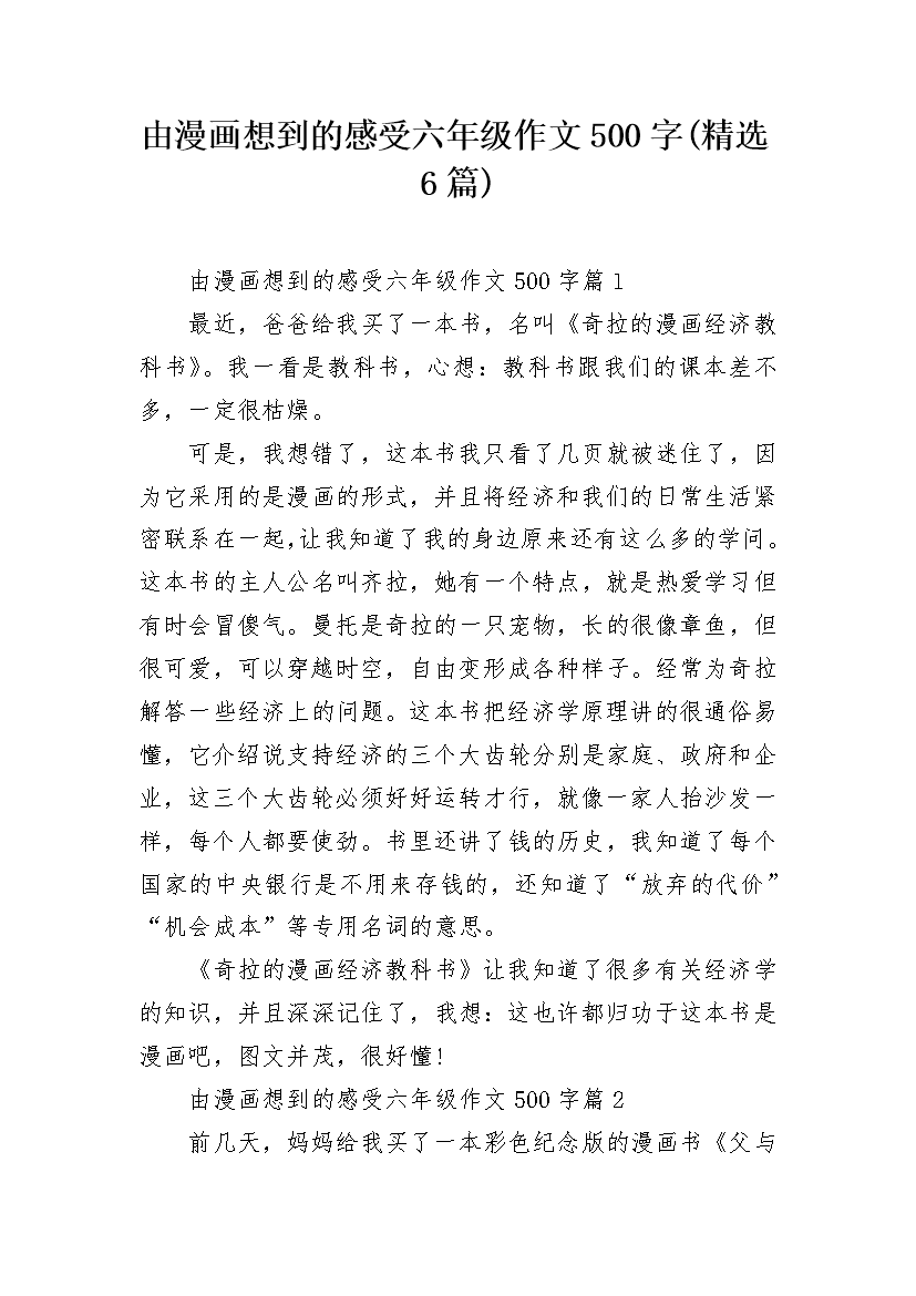 由漫画想到的感受六年级作文500字(精选6篇)