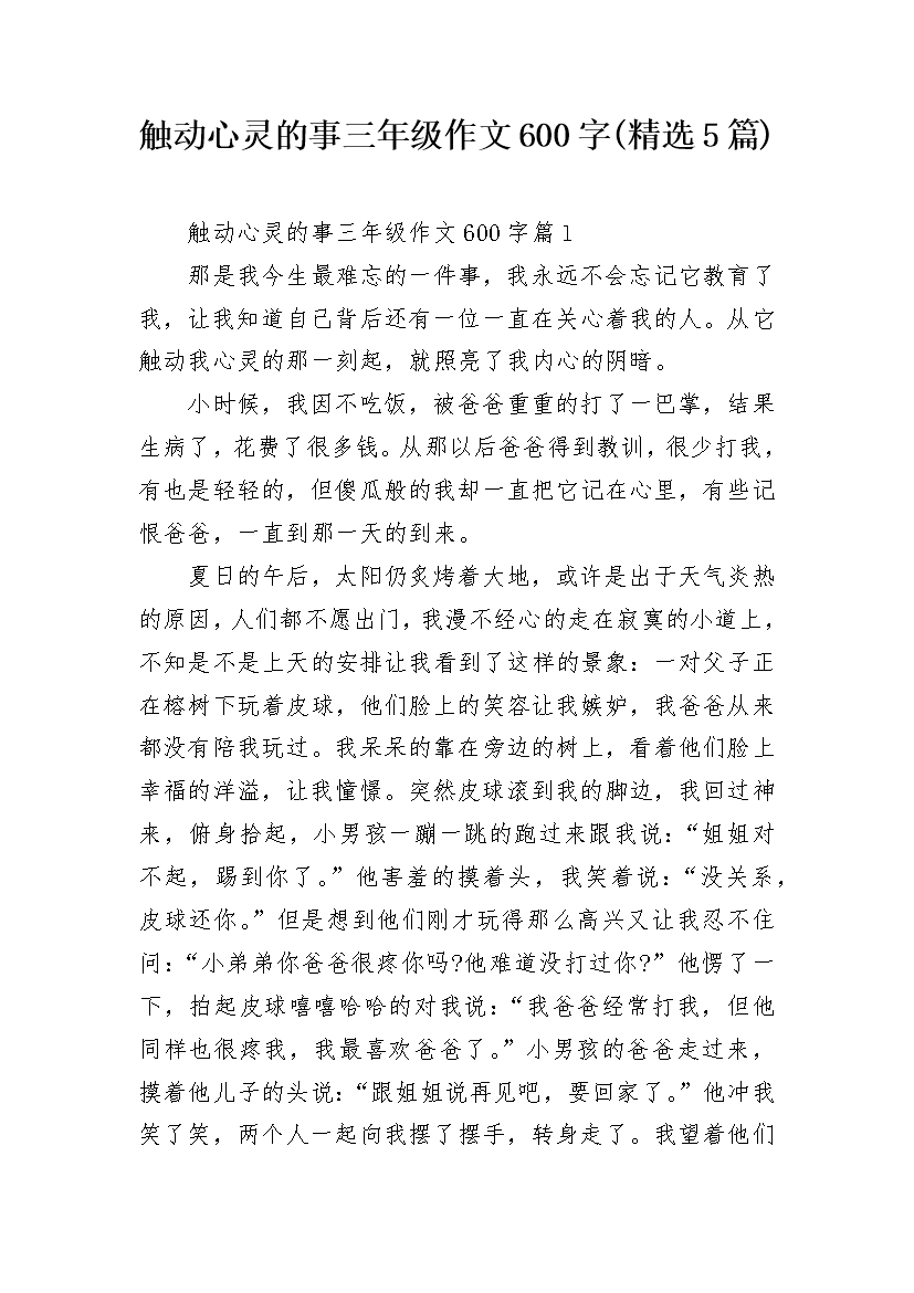触动心灵的事三年级作文600字(精选5篇)